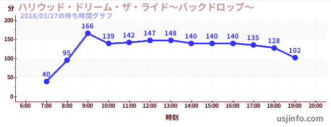 • ハリウッド・ドリーム・ザ・ライド〜バックドロップ〜$B$N(B2018年03月27日の待ち時間
