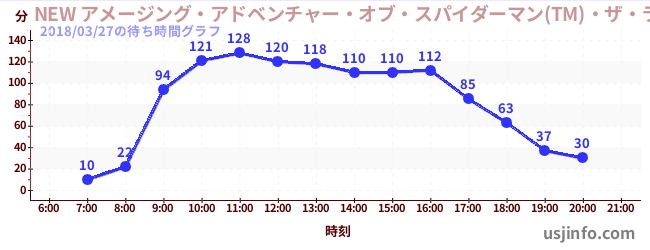 • NEW アメージング・アドベンチャー・オブ・スパイダーマン(TM)・ザ・ライド 4K3D$B$N(B2018年03月27日の待ち時間