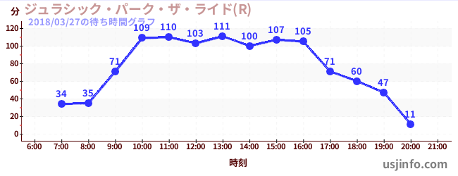 • ジュラシック・パーク・ザ・ライド(R)$B$N(B2018年03月27日の待ち時間