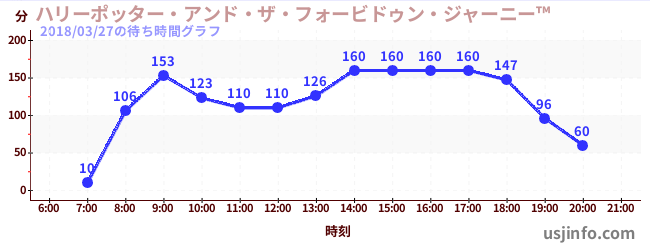 • ハリーポッター・アンド・ザ・フォービドゥン・ジャーニー™$B$N(B2018年03月27日の待ち時間