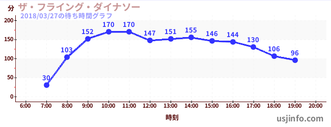 • ザ・フライング・ダイナソー$B$N(B2018年03月27日の待ち時間