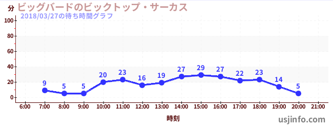 • ビッグバードのビックトップ・サーカス$B$N(B2018年03月27日の待ち時間