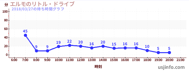 • エルモのリトル・ドライブ$B$N(B2018年03月27日の待ち時間