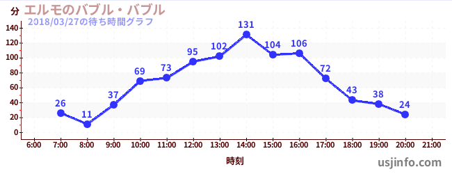 • エルモのバブル・バブル$B$N(B2018年03月27日の待ち時間