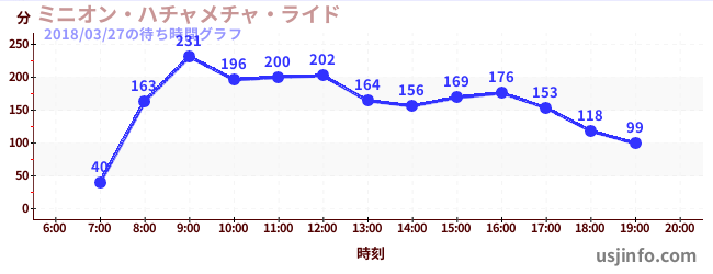 • ミニオン・ハチャメチャ・ライド$B$N(B2018年03月27日の待ち時間