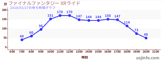• ファイナルファンタジー XRライド$B$N(B2018年03月27日の待ち時間