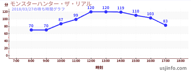 • モンスターハンター・ザ・リアル$B$N(B2018年03月27日の待ち時間
