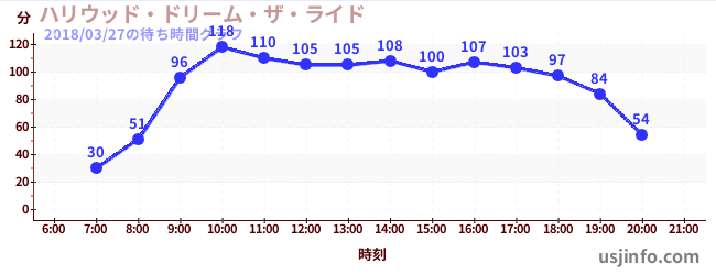 • ハリウッド・ドリーム・ザ・ライド$B$N(B2018年03月27日の待ち時間