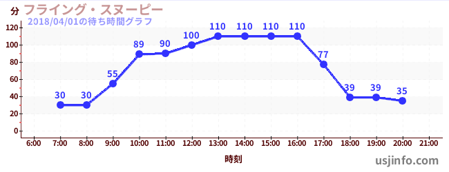 • フライング・スヌーピー$B$N(B2018年04月01日の待ち時間