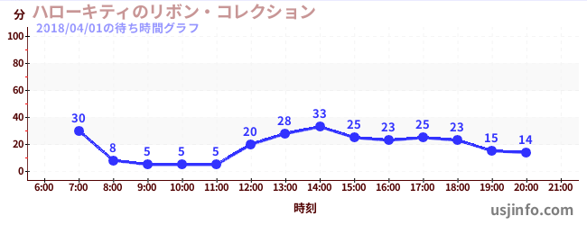 • ハローキティのリボン・コレクション$B$N(B2018年04月01日の待ち時間