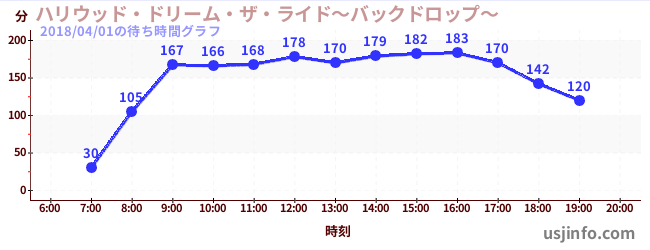 • ハリウッド・ドリーム・ザ・ライド〜バックドロップ〜$B$N(B2018年04月01日の待ち時間