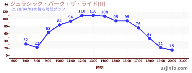 • ジュラシック・パーク・ザ・ライド(R)$B$N(B2018年04月01日の待ち時間