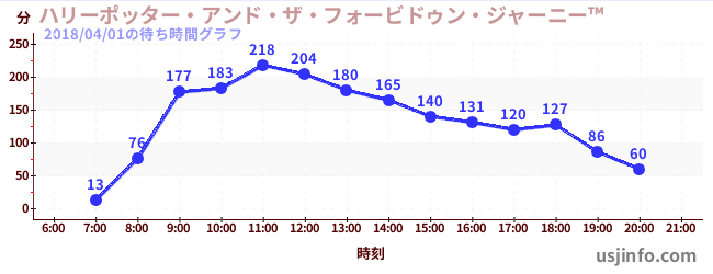 • ハリーポッター・アンド・ザ・フォービドゥン・ジャーニー™$B$N(B2018年04月01日の待ち時間