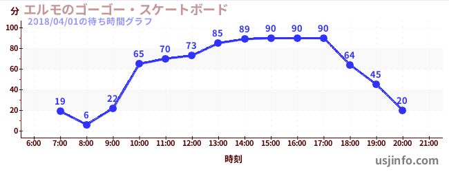 • エルモのゴーゴー・スケートボード$B$N(B2018年04月01日の待ち時間
