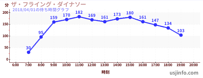 • ザ・フライング・ダイナソー$B$N(B2018年04月01日の待ち時間
