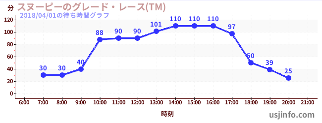 • スヌーピーのグレード・レース(TM)$B$N(B2018年04月01日の待ち時間