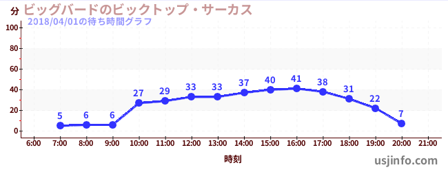 • ビッグバードのビックトップ・サーカス$B$N(B2018年04月01日の待ち時間