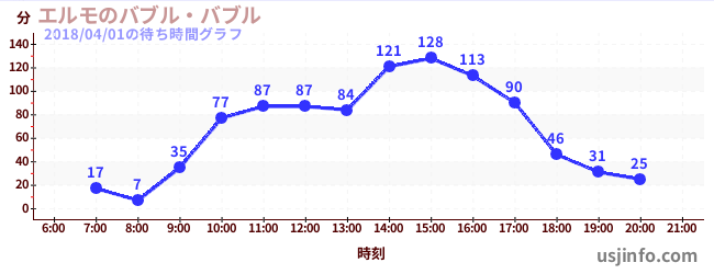 • エルモのバブル・バブル$B$N(B2018年04月01日の待ち時間