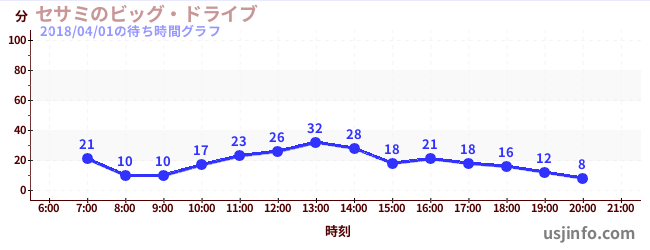 • セサミのビッグ・ドライブ$B$N(B2018年04月01日の待ち時間