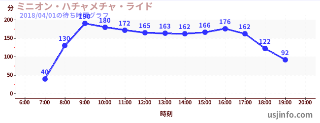 • ミニオン・ハチャメチャ・ライド$B$N(B2018年04月01日の待ち時間