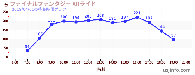 • ファイナルファンタジー XRライド$B$N(B2018年04月01日の待ち時間