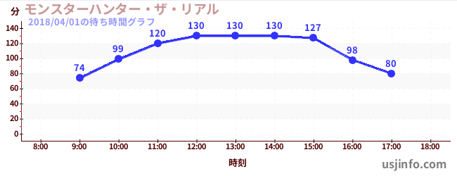 • モンスターハンター・ザ・リアル$B$N(B2018年04月01日の待ち時間