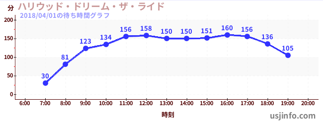 • ハリウッド・ドリーム・ザ・ライド$B$N(B2018年04月01日の待ち時間