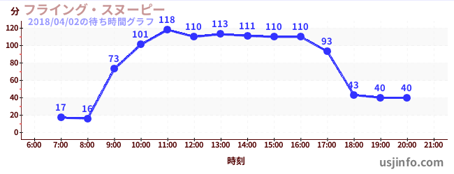 • フライング・スヌーピー$B$N(B2018年04月02日の待ち時間