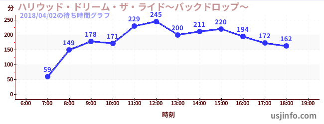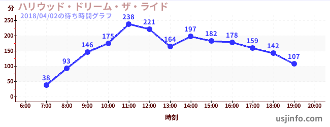 • ハリウッド・ドリーム・ザ・ライド$B$N(B2018年04月02日の待ち時間