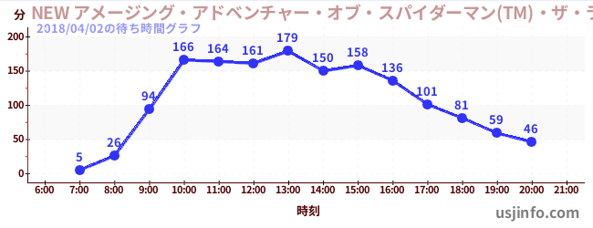 • NEW アメージング・アドベンチャー・オブ・スパイダーマン(TM)・ザ・ライド 4K3D$B$N(B2018年04月02日の待ち時間