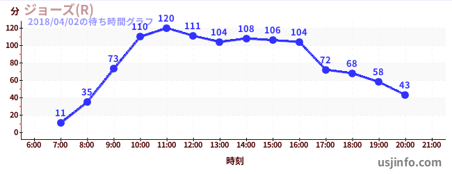 • ジョーズ(R)$B$N(B2018年04月02日の待ち時間