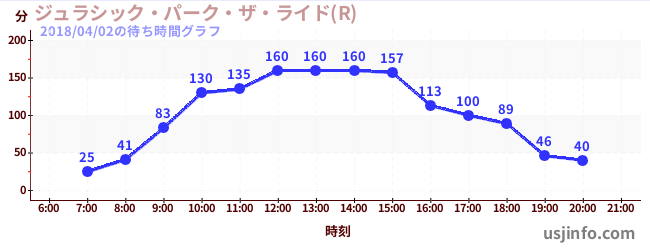 • ジュラシック・パーク・ザ・ライド(R)$B$N(B2018年04月02日の待ち時間