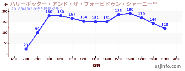 • ハリーポッター・アンド・ザ・フォービドゥン・ジャーニー™$B$N(B2018年04月02日の待ち時間