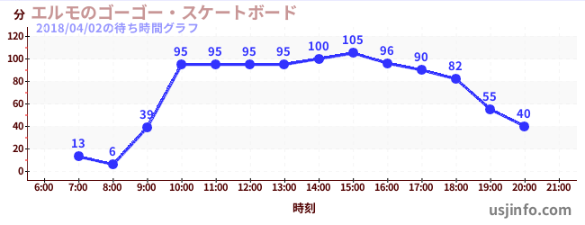 • エルモのゴーゴー・スケートボード$B$N(B2018年04月02日の待ち時間