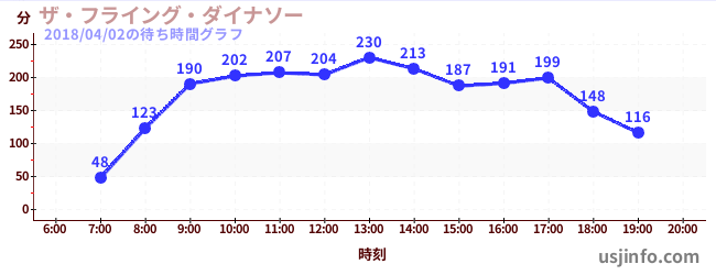 • ザ・フライング・ダイナソー$B$N(B2018年04月02日の待ち時間