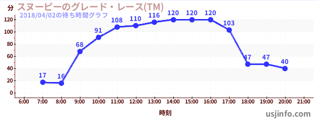• スヌーピーのグレード・レース(TM)$B$N(B2018年04月02日の待ち時間