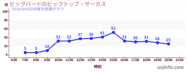 • ビッグバードのビックトップ・サーカス$B$N(B2018年04月02日の待ち時間