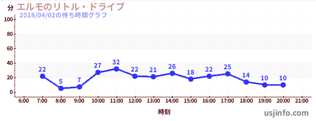 • エルモのリトル・ドライブ$B$N(B2018年04月02日の待ち時間