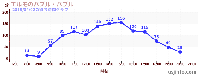 • エルモのバブル・バブル$B$N(B2018年04月02日の待ち時間