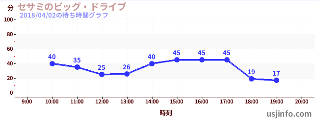 • セサミのビッグ・ドライブ$B$N(B2018年04月02日の待ち時間