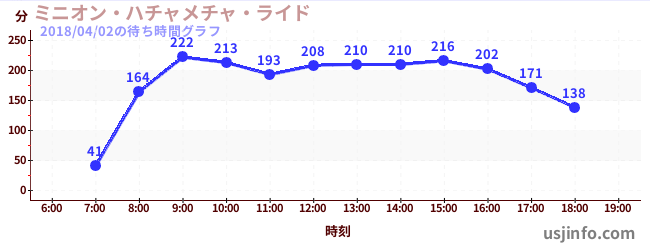 • ミニオン・ハチャメチャ・ライド$B$N(B2018年04月02日の待ち時間
