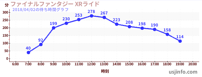 • ファイナルファンタジー XRライド$B$N(B2018年04月02日の待ち時間