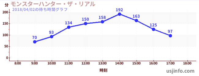 • モンスターハンター・ザ・リアル$B$N(B2018年04月02日の待ち時間