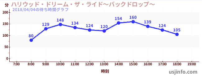 • ハリウッド・ドリーム・ザ・ライド〜バックドロップ〜$B$N(B2018年04月04日の待ち時間