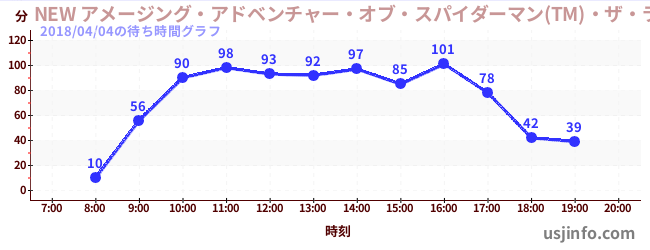 • NEW アメージング・アドベンチャー・オブ・スパイダーマン(TM)・ザ・ライド 4K3D$B$N(B2018年04月04日の待ち時間