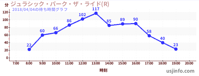 • ジュラシック・パーク・ザ・ライド(R)$B$N(B2018年04月04日の待ち時間