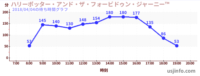 • ハリーポッター・アンド・ザ・フォービドゥン・ジャーニー™$B$N(B2018年04月04日の待ち時間