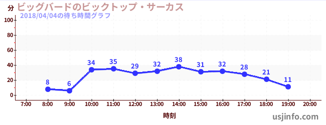 • ビッグバードのビックトップ・サーカス$B$N(B2018年04月04日の待ち時間