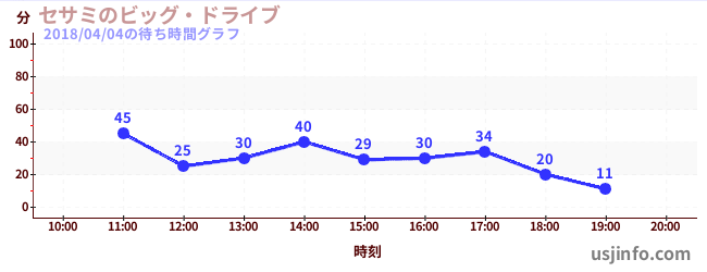 • セサミのビッグ・ドライブ$B$N(B2018年04月04日の待ち時間