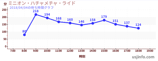 • ミニオン・ハチャメチャ・ライド$B$N(B2018年04月04日の待ち時間